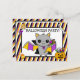 Convide seus amigos e família para sua festa de Halloween com este bonitinho convite de Halloween com um bastão de cartoon segurando doces em sua asa.