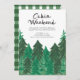 As árvores verdes pintados mão das características deste convite do fim de semana da cabine e uma parte traseira rústica do guingão projetam. Aperfeiçoe para o seu próximo fim de semana da fuga ou do bachelorette da montanha nas madeiras! Pares perfeitamente com nosso itinerário de harmonização.