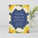 Convite do casamento do girassol do estilo do vintage com um fundo dos azuis marinhos. Apropriado para casamentos do verão ensolarado e eventos exteriores do outono. Disponível e fácil de usar. Personalize o modelo com seu fraseio e veja imediatamente o que seu convite olhará como. Peça o tanto como como você precisa.