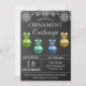 Convide seus hóspedes com este convite de festas elegante de troca de ornamentos com tipografia moderna e belos baubles contra um fundo de quadro. Basta adicionar os detalhes do seu evento neste modelo fácil de usar para torná-lo um convite de tipo único. Sacudir a placa para revelar um lindo padrão de pontos na parte traseira da placa.