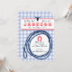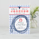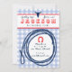 Convite do vaqueiro com luz - guingão azul e acentos vermelhos.