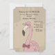 Um convite adorável que caracteriza um flamingo que veste vidros e um laço com um tan, fundo do grunge. Caracterizado como um convite de festas da aposentadoria ele bem-é serido para celebrações do aniversário demasiado.
