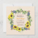 Seus convidados serão deleitados receberam este convite verão-temático lindo. Uma treliça guardara uma grinalda de girassóis amarelos e de bagas azuis junto com a folha verde dois-tonificada. É uma escolha perfeita para que todo o verão caia celebração.