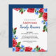 Convites de festas da Reunião Familiar das Flores Patrióticas. Convide amigos e família para a celebração patriótica da sua família com estes convites de flores brancas e azuis, patriotas e modernos. Personalize este convite floral patriótico com o seu evento, nome e detalhes da sua festa. Veja nossa coleção para dar presentes, favoritos para festas e suprimentos de reagrupamento familiar patrióticos. COPYRIGHT © 2021 Judy Burrows, Black Dog Art - Todos Os Direitos Reservados. Convite de festas Azul Branco Azul Floral Patriótico