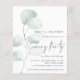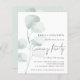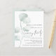 Um valor para o alternativo do ORÇAMENTO em tamanho menor de 4,5 x 5,6" de semirbrilho de 110 lbs, que é de espessura semelhante a um cartão postal (no entanto, não é adequado para uso como cartão postal). POR FAVOR, OBSERVE QUE HÁ UM convite por folha. Orçamento Eucalyptus Convite de festas da Noite de Casamento QR. Uma ramificação de folhas de cor aquosa macia de eucalipto é subtilmente ao fundo à esquerda, com a tipografia parcialmente sobreposta no topo e alinhada à direita. Um script manuscrito para o Partido da Noite e o resto do texto que você pode personalizar facilmente.No verso, um plano de fundo de sábio de coordenação com as folhas misturadas ao fundo.