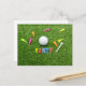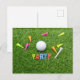 Convite do Partido Golf com bola de golfe e cartão postal verde de lançamento