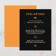Um convite do Halloween que usa símbolos icônicos do Halloween como sotaques cor de laranja: um morcego, uma teia de aranha, um jack o'lantern e uma aranha. As informações personalizadas da sua parte em branco são separadas pelos ícones. A parte de trás laranja é vazio esquerdo para que você possa adicionar informações adicionais se quiser. Disponível em favores e postagens correspondentes.