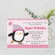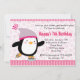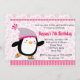 Convite bonito do patinagem no gelo do pinguim no rosa com fundo do floco de neve. Para mais design, visita www.callachic.com