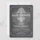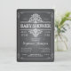 Um divertimento e um convite na moda a um chá de fraldas para mamã-à-estar caracterizam um efeito do quadro, com rotulação que tem o olhar popular da escrita no giz em um conselho preto. Com uma mistura ecléctico da pia batismal e do estilo, no branco neutro do género, o olhar é brincalhão e dando boas-vindas - apenas aperfeiçoe para um chá de fraldas para um menino ou uma menina - ou quando o género do bebê será uma surpresa.