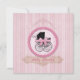 Parte dianteira: Carruagem de bebê do vintage/pram doces no fundo listrado gasto. Parte traseira: Personalize seu texto contra um teste padrão da listra do vintage com motivo da carruagem.
