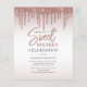 Convite do Rosa Dourado Glitter Drips Script Sweet