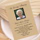 Este adorável convite para comemoração apresenta uma foto do seu amado, borrado em preto. Os detalhes do convite aparecem em um belo fundo brando com um estilo de estilo preto elegante. Simplesmente uma bela maneira de convidar convidados para um serviço memorial para o seu amado. Compaixão por direitos autorais