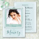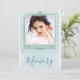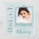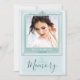 Elegante memorial ou convite para o funeral com sua foto personalizada emoldurada por um azul empoeirado com design verde. Este convite é bonito para a senhora morta.
