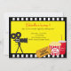Comece sua celebração fora com este convite adorável da noite de cinema. Tem todos os elementos de uma grande noite de cinema. Há uma câmera de filme que levanta-se no lado esquerdo do convite. Na parte inferior há uma bebida, pipoca, e um bilhete. O fundo é amarelo com uma beira checkered preto e branco. Verifique para fora nossos muitos outros design e produtos nesta linha. ©Riefka