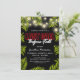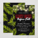 Convites de festa de verão com um fundo preto elegante que pode ser alterado para qualquer cor, luzes cintilantes, folhas de palmeira tropicais de verão, um letreiro neon vermelho e branco que diz "último chamado antes do outono", e um modelo de texto moderno que pode ser facilmente personalizado.