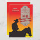 A silhueta de um vaqueiro contra um céu do por do sol cria este cartão considerável. O painel da palavra pode ser arrastado a todo o lugar, feito maior ou menor (+-) ou eliminado fazendo a isto um convite versátil.