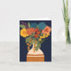 Cartão em branco com desenho floral solto em um vaso de cerâmica. Flores em laranja, azul, roxo, vermelho e amarelo. Cartão de saudação de natureza-morta floral alegre.