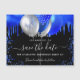 Um fundo preto decorado com pingos azuis reais, confete e balões. Personalize e adicione uma data e nome/idade. O texto: Salvar a Data é gravado com um script de estilo com letra de tendência grande.