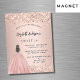 Um convite magnético moderno, na moda e glamouroso para uma doce festa de aniversário 16, 16. Um fundo rosa de ouro com poeira falsa de ouro, uma garota vestindo um vestido de bola. O nome é escrito com um moderno estilo escrito à mão. Personalize e adicione os detalhes da sua festa.