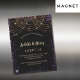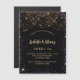 Para um doce elegante 16, 16 anos. Um fundo na moda preto. Decorado com pó de ouro falso roxo e poeira de luz ouro. Personalize e adicione um nome, idade e detalhes da festa. O nome é escrito com um script de estilo manuscrito