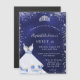 Um convite magnético moderno, na moda e glamouroso para uma doce festa de aniversário 16, 16. Um fundo azul da meia-noite com pó falso prateado, tiara e vestido. A cor azul é irregular. O nome é escrito com um moderno estilo escrito à mão. Personalize e adicione os detalhes da sua festa.