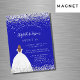 Um convite magnético moderno, na moda e glamouroso para uma doce festa de aniversário 16, 16. Um fundo azul real com brilhos falsos, uma garota vestindo um vestido de bola. O nome é escrito com um moderno estilo escrito à mão. Personalize e adicione os detalhes da sua festa.