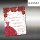 Um convite moderno, na moda e glamouroso para uma doce festa de aniversário 16, 16. Um fundo branco com brilhos, um vestido vermelho e rosas vermelhas, florais. O nome é escrito com um moderno estilo escrito à mão. Personalize e adicione os detalhes da sua festa.