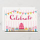 Uma mesa doce do partido da loja com bandeira, flâmulas, potes de doces, bolo, e pop do bolo