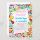 Convite do aniversário do tema dos doces de Candyland. Este convite de aniversário é personalizado facilmente para seu partido ou todo o evento escolhendo "personaliza-a!" abotoe para começar a adicionar seus detalhes do evento, estilo de pia batismal, tamanho & cor de pia batismal, e expressão.
