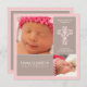 Os blocos contemporâneos de cor macia destacam duas fotos de seu bebé neste design moderno para o batismo ou o baptismo da sua filha. Decorado com uma cruz elegante do rosa na parte dianteira, toda sua informação da celebração está na parte traseira. Os produtos de coordenação fazem um grande conjunto: Também disponível: