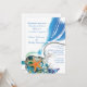 Você pode quase cheirar o ar de sal e sentir a brisa do oceano com este convite lindo do praia-tema. O azul e o abstrato do verde rodam e alinham o anfitrião uma estrela do mar alaranjada e cascatas de uma "onda" através do convite. Apropriado para toda a ocasião comemorada no verão ou aproxime uma praia.