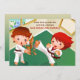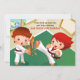 Um convite da arte martial perfeito para celebrações do partido das crianças. As características de design coloridas um menino que guardaram um bloco de madeira e uma menina que retrocede e que quebra o. Apropriado para um ou outro género.