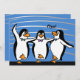 Três pinguins deliciosos estão dançando o syrtaki. Uma dança grega da felicidade e da celebração. Opa!