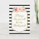 Você será meu cartão de convite de damas de honra em um padrão clássico de listras brancas pretas com detalhes de ouro vintage, flores cor-de-rosa e pêssego e texto escrito à mão, disponível em uma grande variedade de produtos de casamento correspondentes e para o resto da sua festa noiva. Personalize o texto para fazer um convite exclusivo da bridesmaid.