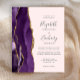 A borda esquerda deste elegante convite de casamento moderno apresenta uma cor d'água roxa, borda agitada, aparada com falso brilho dourado. O texto personalizável combina letra de escrita manual, chapa de impressão e fontes itálicas em cinzas de carvão em um fundo cor-de-rosa esbranquiçado. O verso apresenta um design de agate roxo e dourado correspondente. NOTA: os envelopes não são incluídos automaticamente nestes convites de orçamento, portanto lembre-se de escolher a opção "envelopes brancos"!
