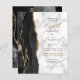 A borda esquerda deste elegante convite de casamento moderno apresenta uma coloração aquosa preta, borda agitada, aparada com falso brilho dourado. O texto personalizável combina um script de manuscrito dourado com fontes em preto e itálico em uma cinza e fundo de mármore branco. O verso apresenta um design de agate preto e dourado correspondente.