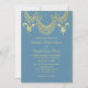 Convide o amigo e a família a seu casamento com estes azul elegante de Niagara e convite Wedding colorido ouro que caracterizam uma festão do ouro do falso de rosas filigranas do vintage e que penduram flores da íris. Personalize este design romântico do estilo do nouveau da arte moldado com os pontos dos confetes do ouro adicionando o nome dos noivos, assim como detalhes wedding. Imagem impressa do plano, nao metálica.