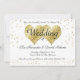Convite de casamento com Confetti Dourado e Corações Dourados. Este Convite de Casamento foi projetado com Dourado Confetti e Corações de Casamento em fundo branco. O texto inicial inclui: Nomes da noiva e do noivo, data de casamento, hora, local e detalhes de recepção. O texto do verso inclui: Detalhes de Recepção sobre um fundo dourado. Para personalizar, basta inserir seus detalhes em nosso modelo fácil, substituindo o texto de exemplo. Certifique-se de ver o material de papelaria e acessórios correspondentes para esta Coleção Dourada Confetti de Corações Dourados de Convite para Casamento.