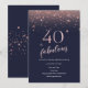 Azuis marinhos & convite cor-de-rosa do aniversário de 40 anos do brilho do ouro.