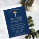 Convide sua família e amigos para a comunhão de 1ruas do seu filho com este Convite à Carteira de Carteira de Nova Comunhão do Marinho Azul Cruz Dourada Elegante. Esta design apresenta uma bela e simples cruz ouro contra um clássico fundo azul escuro. Personalize a cor e a fonte e altere a data e o texto de acordo com as suas necessidades. Perfeito para a comuna de 1rua de um menino.
