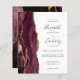 A borda esquerda deste elegante convite de casamento moderno mostra uma borda de água borrifada, cortada com falsa brilho dourado. O texto personalizável combina manuscrito, copperplate e fontes itálicas em cinzas de carvão em um fundo branco. O lado inverso apresenta uma burgundy e uma design de agata dourada.