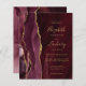 Este elegante convite de casamento moderno apresenta uma cor vermelha de água borrifada, design, aparada com uma falsa brilha de ouro. O texto personalizável combina manuscrito dourado, copperplate e fontes itálicas. O verso apresenta um design de burgundy coordenadora e de ouro agate.