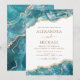 Convite Dourado de Casamento Azul Agate Turquoise