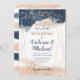 Convite Dourado de Casamento Azul-Cor-de-Rosa Azul