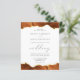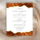 Este elegante convite de casamento mostra cor d'água queimada laranja aparada com folha de ouro nas bordas superior e inferior. A palavra "casamento" aparece em escrita caligráfica. Personalize o texto da cinza de carvão com os nomes da noiva e do noivo e os detalhes do casamento. A laranja queimada e o design de agate dourado são repetidos no reverso.