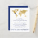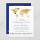 Mapa do mundo do ouro falso em chic com um coração móvel para que você possa criar um convite do tema azul, ouro e viagem branco elegante para uma recepção local ou um casamento de destino. DICA DO DESIGNER" Clique em "personalizar mais" para mover o coração, mudar o fundo e a cor do texto, mudar as fontes ou reorganizar os elementos e criar o seu próprio design usando a arte exclusiva do mapa de folhas de rosa douradas. Perfeito para um casamento no estrangeiro e celebrações de aniversário de destino de aventura em todo o mundo. Observe que isso é impresso em papel fino leve. Para obter mais opções de papel, visite as Coleções do Zazzle Designer de Destinos de Uvas de Papel para coordenar itens em papel resistente.