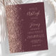 A borda esquerda deste elegante convite de casamento moderno apresenta uma borda falsa de ouro rosa. O texto personalizável combina manuscrito colorido cor branco de rosa pálido, manuscrito e fontes itálicas em um fundo burlando escuro. O lado inverso apresenta uma pescada escura e design de ouro rosa.