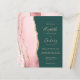A borda esquerda deste elegante convite de casamento moderno apresenta uma cor-de-água rosa pincelada com borda falsa de ouro. O texto personalizável combina uma escrita manual pálida e dourada, fontes em copperplate e itálico em um fundo verde esmeralda. O verso apresenta um design dourado e uma pincelada correspondente.