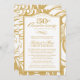 Este convite de design para festa de 50º aniversário da The Spotted Olive™ apresenta as palavras "Você está convidado para uma Celebração de 50º Aniversário" com tipografia estilosa sobre um fundo ousado com padrão damasco. Fácil personalização com os detalhes do seu evento.