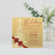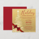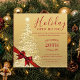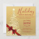 Natal / Casa Aberta / modelo de Convite de festas Jante com "Árvore de Natal Dourada com Lâmpadas de Fada" e Fita Vermelha. Imprima aos seus amigos este design de convite sofisticado e elegante. Totalmente personalizável!